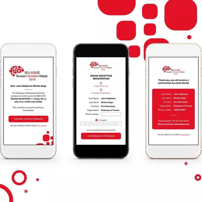 当瑞士驻华大使馆要求我们为2018年瑞士创新周提出视觉识别和图形设计方案时,我们决定尝试一些不同于传统纸质邀请函和画布背景的设计。
