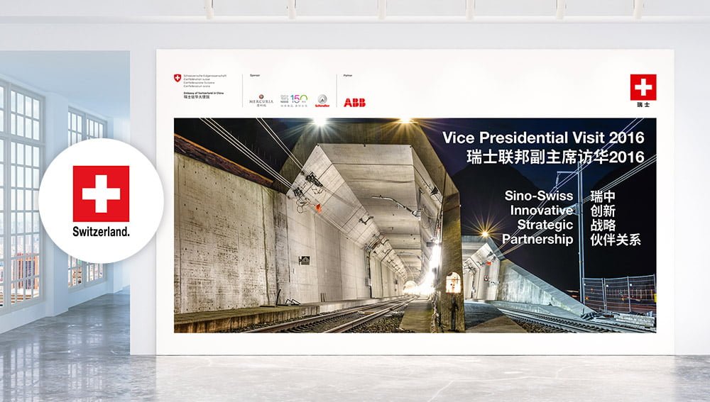 我们有3天时间设计、打印、制作和安装一块2.5 x 5米的背景板、六张2 x 5米的横幅海报和一张拉起式海报,为瑞士副总统上周三在北京的访问做好准备。安装在副总统到达前一小时完成,正好准时。