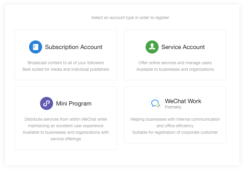 选择您要设置的官方账户类型。