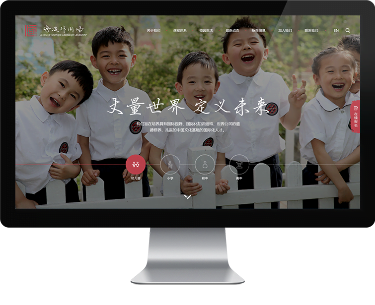 还有什么是比讲故事更有趣的方式呢,当您访问海淀外国语集团首页欢迎界面的时候,从幼儿园的快乐、小学的好奇求知、初中的全面发展,最后到高中的国际化人才,以时间线的形式向家长们充分的展示了集团的主要业务,以及各个阶段学生们的真实形象。