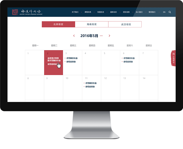 为了满足集团的业务需求,网站功能丰富,包括:全站搜索,中英双语,定制的课程,活动管理,校历,餐食,杂志等功能开发。 同时,网站灵活易用:便捷的后台内容管理系统适合没有任何IT经验的管理者使用。可持续化的开发:便于以后新的需求定制开发,节省开发成本。