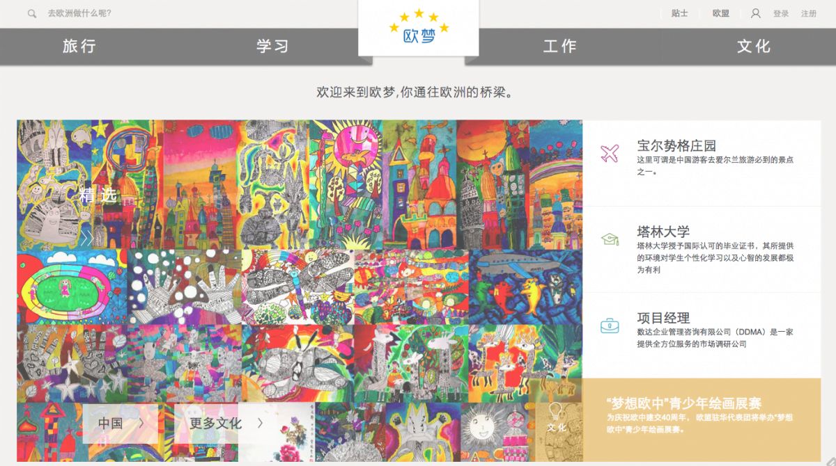 为了有效锁定受众并满足其需求,欧盟驻华代表团委托Flow为其设计并开发一个关于欧盟各国的网上综合信息中心,用以向有意到欧洲旅游,学习或者工作的中国年轻人提供准确可靠的官方信息。该线上平台要求在移动设备上同样拥有完美流畅的浏览体验。要构建这样一个独特的一站式综合信息平台,Flow就不得不与28个欧盟成员国进行密切的沟通合作,这是一次令我们的团队倍感兴奋的挑战。