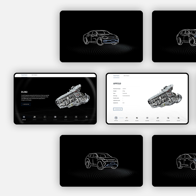 图片是网站的主要视觉呈现,我们需要仔细挑选合适的素材并进行创作。针对该项目,我们选择手绘的方式为每款产品创建对应的车型视觉,结合整体视觉设计来凸显大众汽车优质且创新的变速器产品。同时,通过简单有趣的交互设计,进一步加深用户对产品的第一印象。