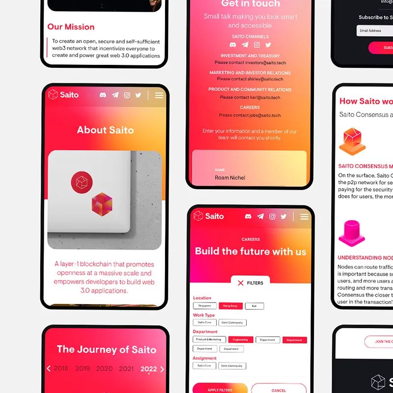 “Flow迎接了将Saito核心概念以引人入胜和视觉上吸引人的方式进行传达的挑战。他们与Saito社区的成员紧密合作,创造了一种视觉冒险的方式,激励受众开始一段既充满脑力刺激又具有挑战性的旅程。我们对结果感到非常满意,并为这个网站作为我们观众第一次接触该项目的体验而感到自豪。”
