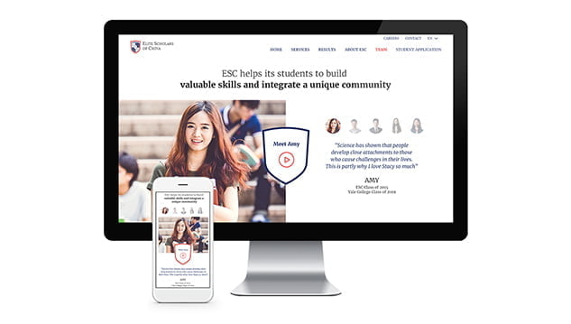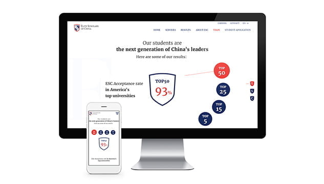 Elite Scholars of China (ESC) 来找我们,目标是提升他们的网站外观和感觉。ESC 致力于“帮助中国最有动力的学生获得并成功进入美国顶尖大学”,他们需要一个与其高质量服务和充满活力的创业工作环境相匹配的网站。