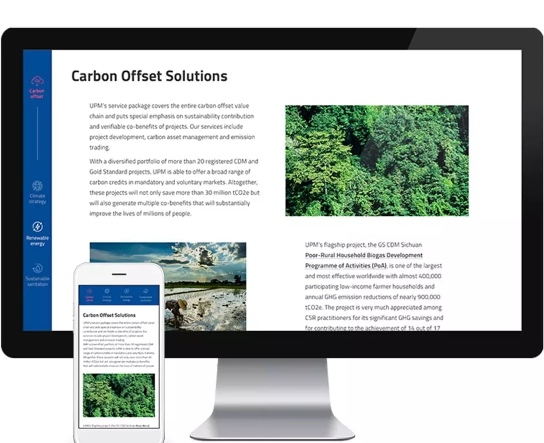 UPM 希望创建一个数字平台,以生动展示他们在气候保护和可持续发展方面的工作。我们设计了一个互动网站,展示了 UPM 在全球范围内的工作中的人文关怀。