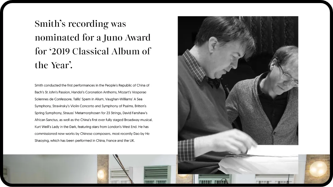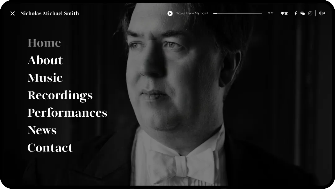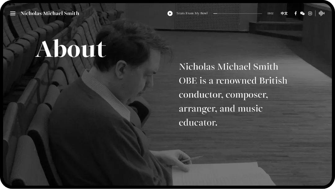 考虑到尼古拉斯·迈克尔·史密斯主要在欧洲、亚洲和中国演出,我们特别优化了网站,以确保它在中国大陆和国际访客之间都有良好的用户体验。