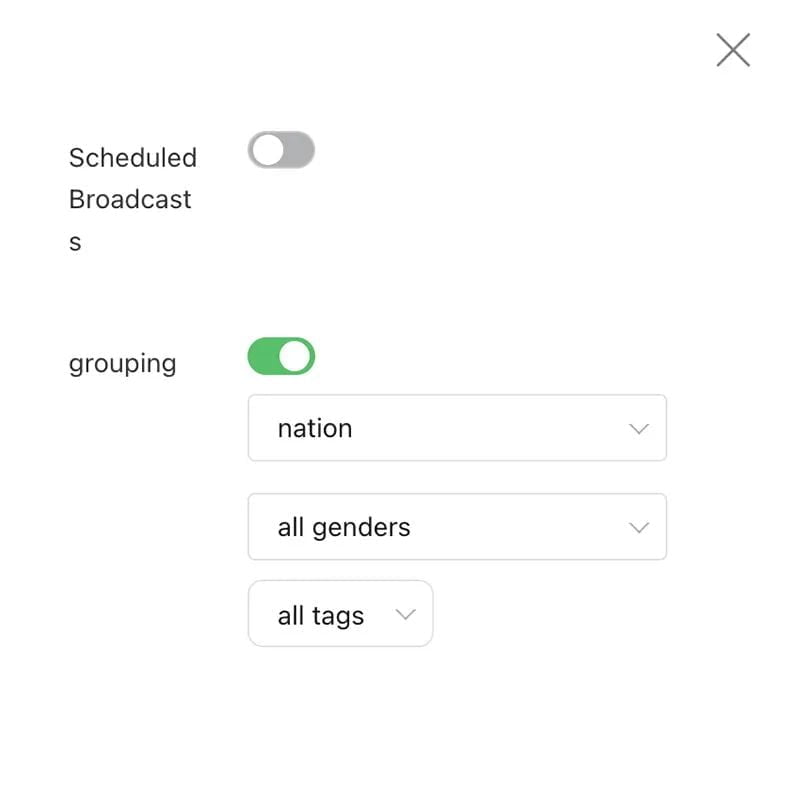 当从微信公众号发送帖子时,公司可以选择发送给哪些客户。这个功能允许品牌根据不同的细分(如性别、国家和标签)个性化分享内容。