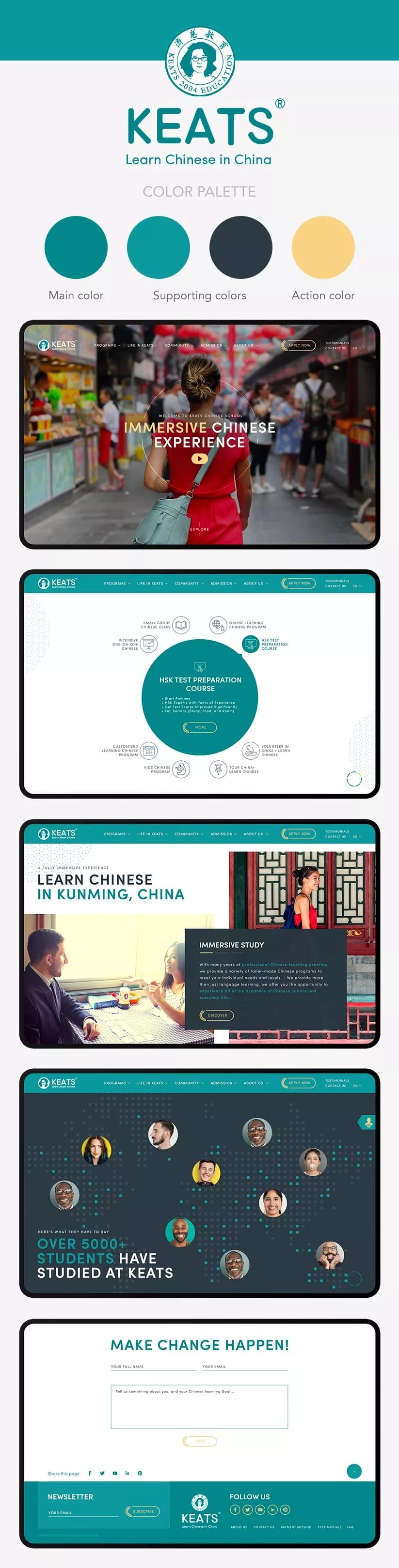 网站的颜色应从品牌的视觉识别系统(VI)中仔细挑选。这些大约4种颜色将用于创建网站的结构和导航提示。UI(用户界面)颜色调色板的基础是品牌的主要颜色,也是网站上最突出的颜色。以这个主要颜色为基础,通过运用颜色理论方案并了解目标受众和所希望传达的情感,来为标题、背景、按钮、关键图像和其他元素指定颜色。