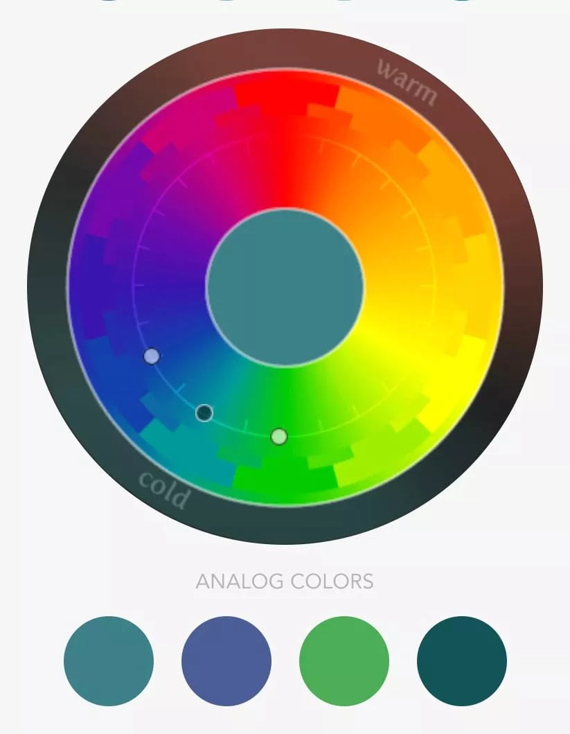 类比色是指位于某一颜色两侧的颜色。这种颜色方案在自然界中常见,这些颜色搭配能营造和谐的感觉。